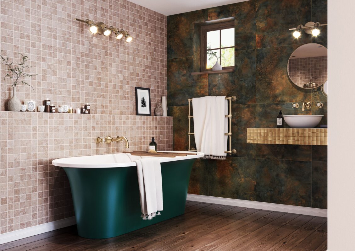 Scottish homeowners are moving beyond plain tiles and neutral palettes. Textured and patterned tiles are being used to add a personalised, unique feature, while a combination of materials such as stone, ceramic, and mosaic adds depth and elegance. Geometric patterns, rich colours, and subtle contrasts are popular ways to give bathrooms character without overwhelming the space.